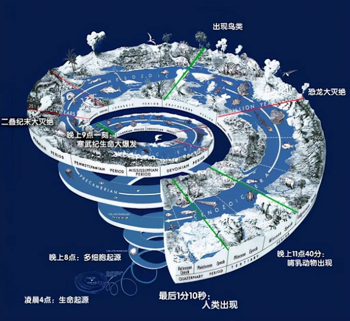 改变这一切的,是一种不起眼的绿色植物 —— 绿藻。绿藻的出现,开启了地球上最伟大的化学反应 —— 光合作用。它们吸收空气中的二氧化碳,释放出氧气与能量,不仅逐步改变了地球的大气成分,更为生命的诞生提供了基础条件。从最初的蛋白质分子,到单细胞生物,再到多细胞生物的演化;从海洋中的原始鱼类,到登陆的两栖动物,再到哺乳动物的崛起,最终演化出人类,这一过程耗费了整整数十亿年。